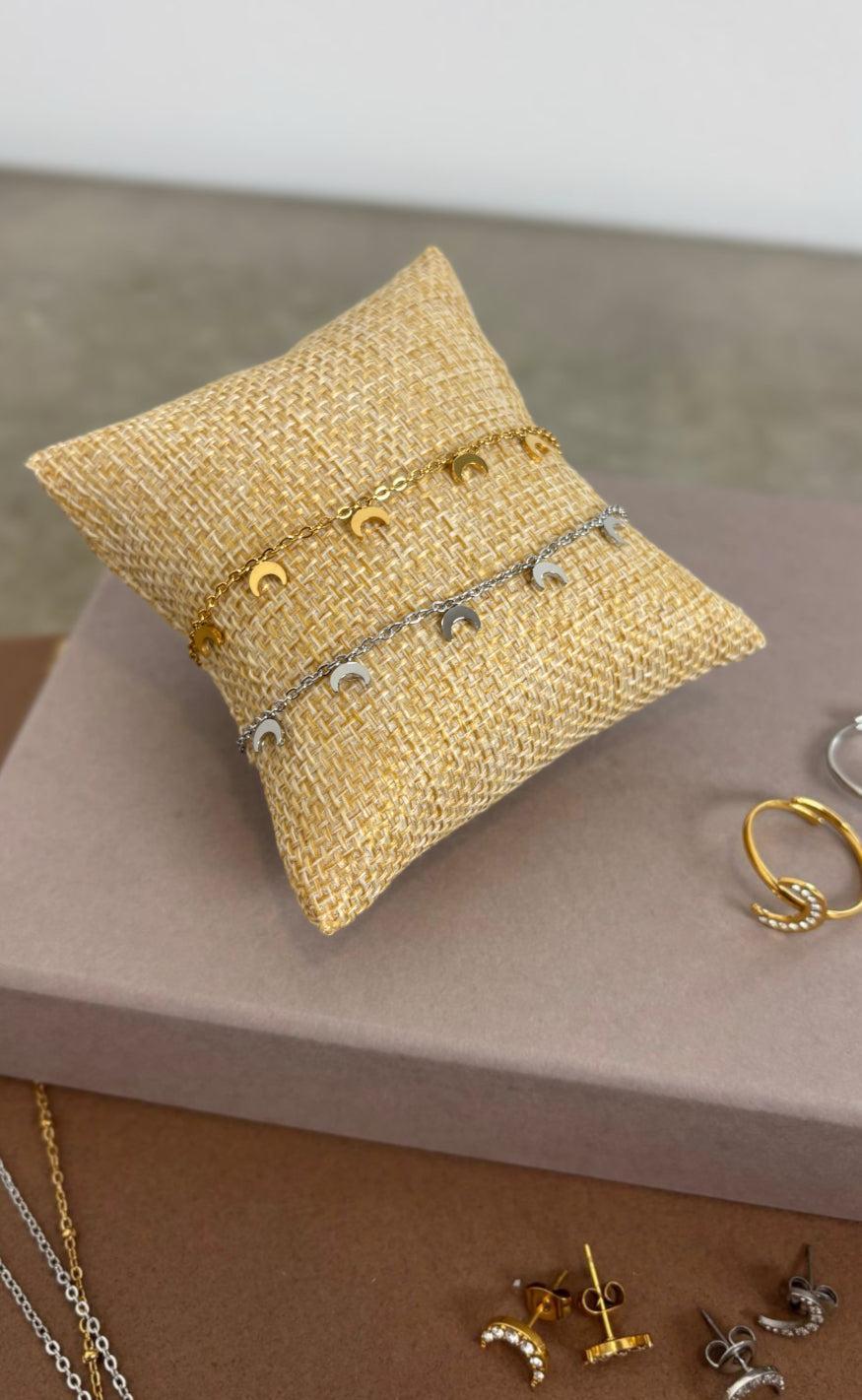 Armbånd fra Smykkeli Copenhagen i guld med 5 vedhæng formet som måner. Armbåndet har et enkelt og stilrent look, der pifter ethvert outfit op.
