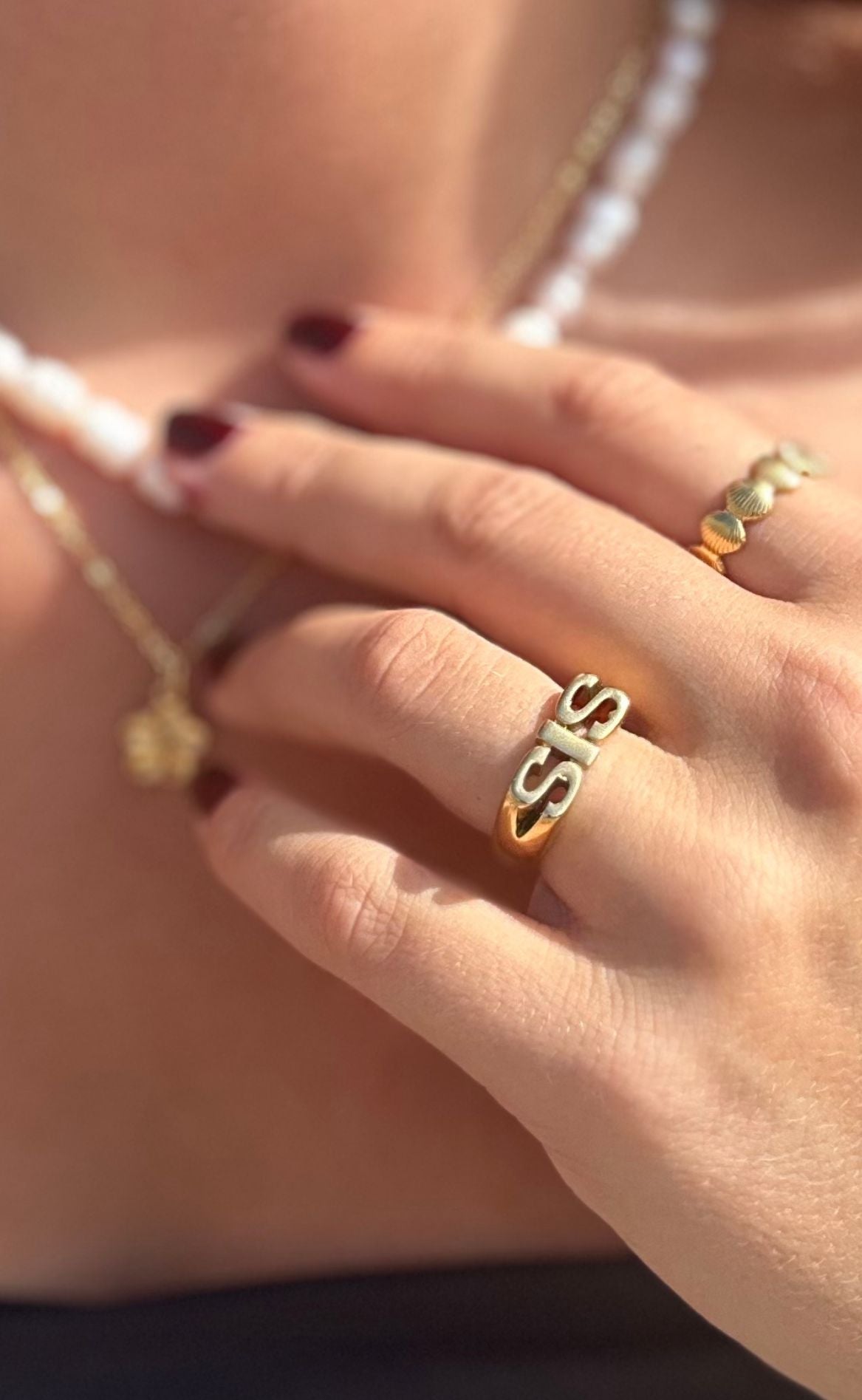 Flot ring fra Smykkeli i guld, med skriften "DAD".
